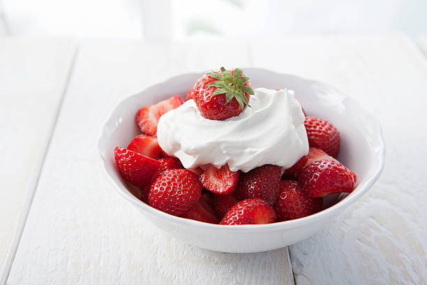 Continue mixing until the cream forms stiff peaks. This means that the cream can keep its form. You can test this by putting the bowl upside down, and the cream will not fall.